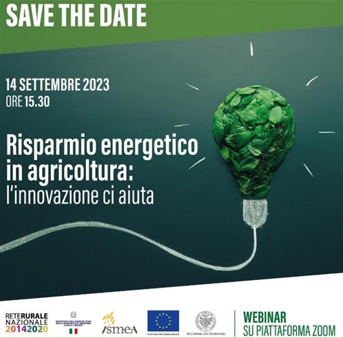 14 settembre 2023 – Webinar “Risparmio energetico in agricoltura: l’innovazione ci aiuta”