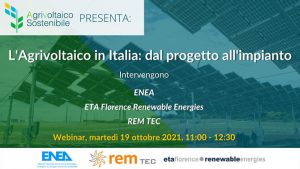 19 ottobre 2021 – Webinar: Agrivoltaico in Italia: dal progetto all’impianto