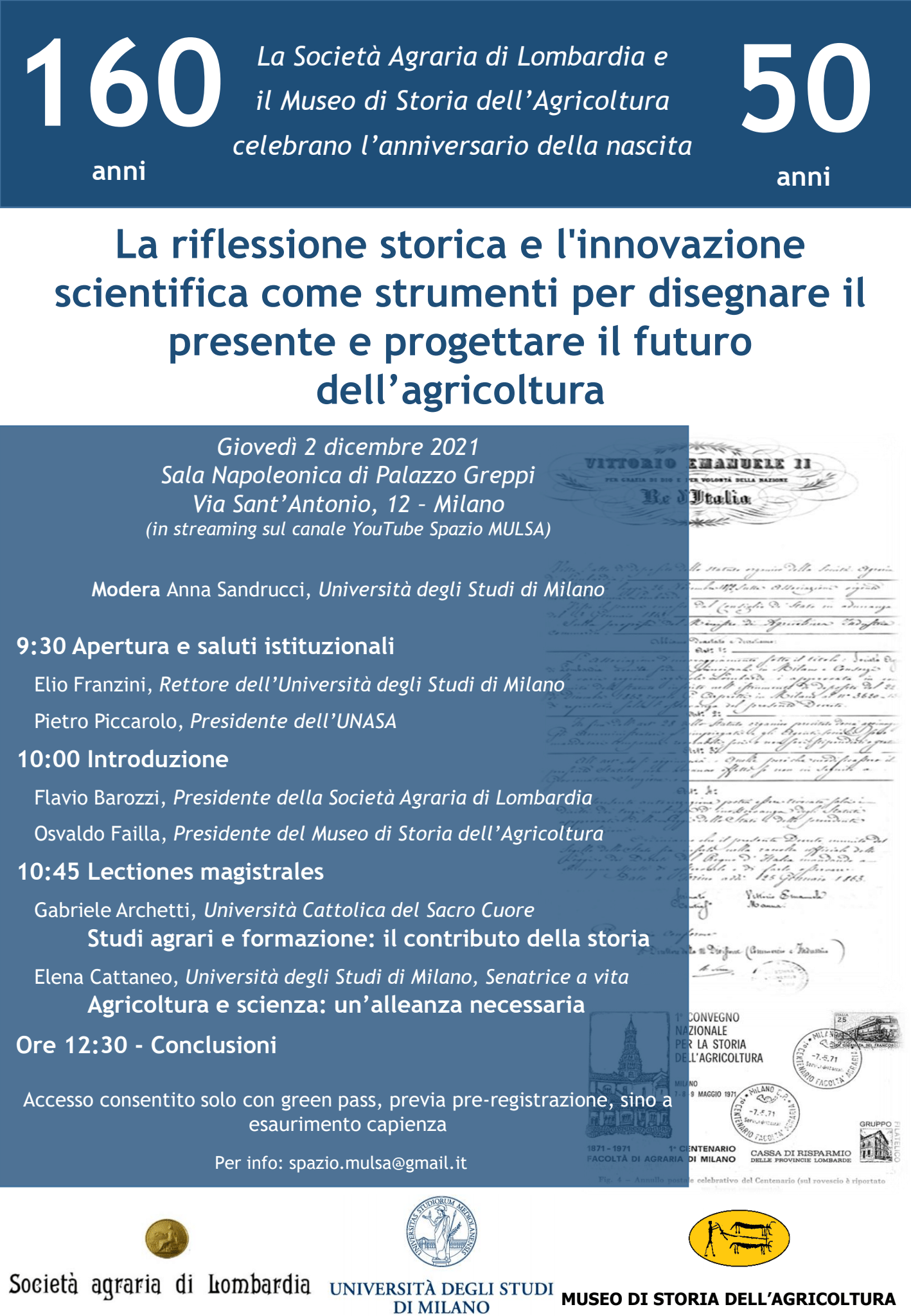 Evento celebrativo del 160° anniversario dalla costituzione del comitato fondatore della Società Agraria di Lombardia e del 50° dalla nascita del Museo di Storia dell’Agricoltura.