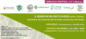 25 novembre 2021 – Convegno e concerto “Il mondo in un chicco di riso: storia, scienza, nutrizione ed economia del secondo cereale più consumato”