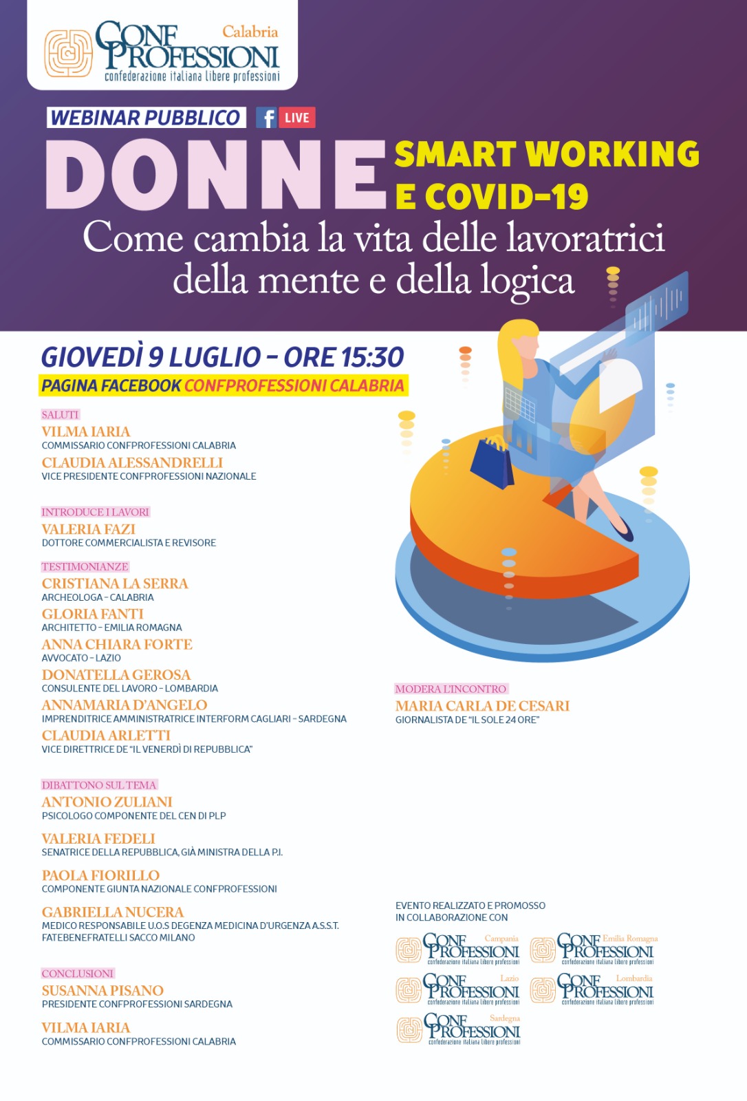 9 luglio 2020 – Webinar Confprofessioni Calabria “SMART WORKING E COVID-19, COM’E’ CAMBIATA LA VITA DELLE DONNE LAVORATRICI DELLA MENTE E DELLA LOGICA”