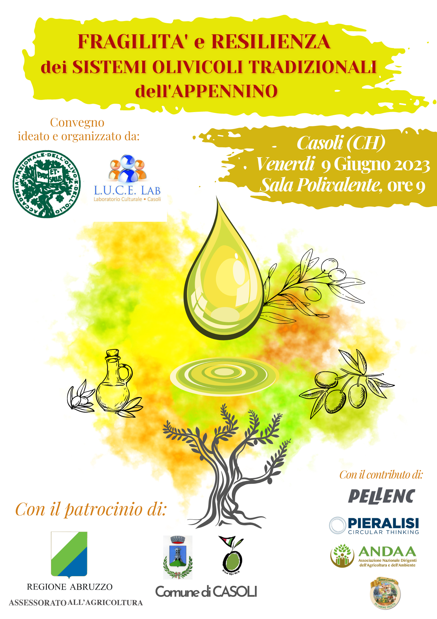 Di questi temi se ne parlerà nel corso di un convegno organizzato dall’Accademia Nazionale dell’Olivo e dell’Olio, con una Tornata in Abruzzo a Casoli (Chieti), venerdì 9 giugno 2023, dal titolo: “Fragilità e resilienza dei sistemi olivicoli tradizionali dell’appennino”.