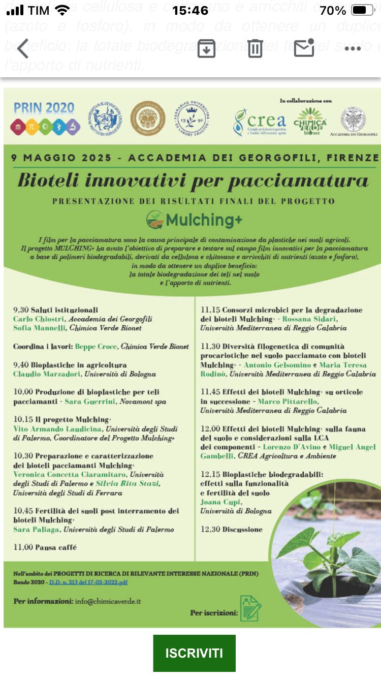 Firenze, 9 maggio 2025 – “Bioteli innovativi per pacciamatura”