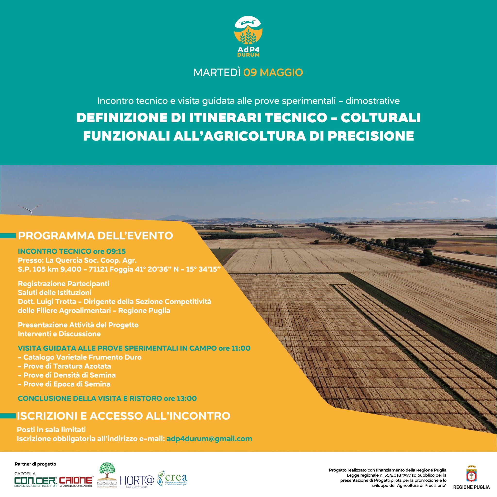 Foggia, 9 maggio 2023 – Incontro tecnico e visita guidata alle prove sperimentali-dimostrative “Definizione di itinerari tecnico-colturali funzionali all’agricoltura di precisione”