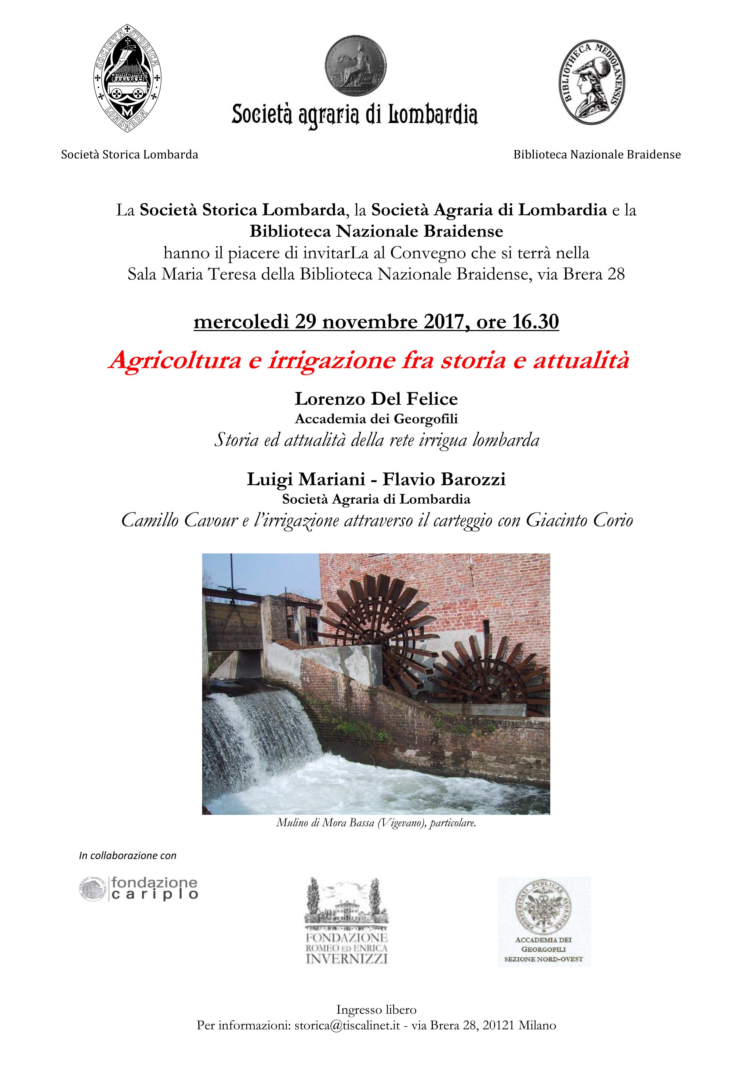 Milano, 29 novembre 2017 – Convegno “Agricoltura e irrigazione fra storia e attualità”