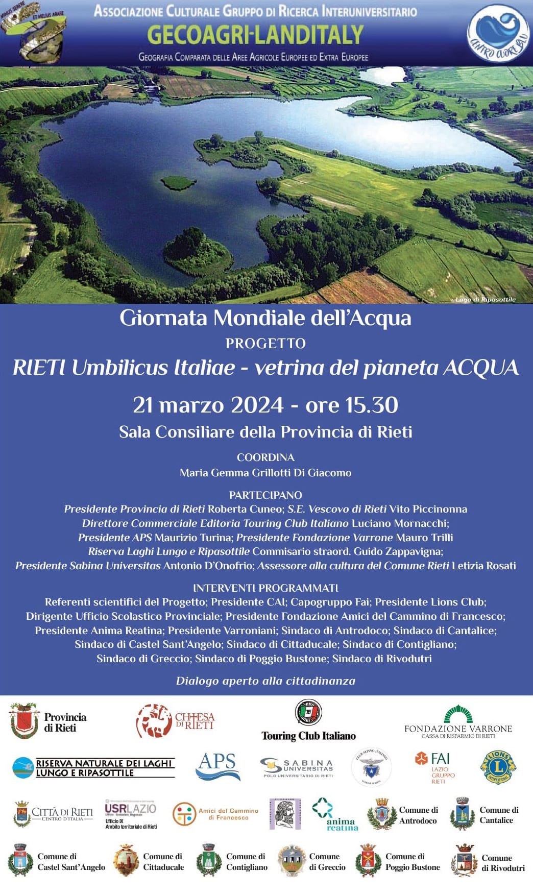 Rieti, 21 marzo 2024 – Giornata Mondiale dell’Acqua – Progetto RIETI Umbiculus Italiae – Vetrina del pianeta ACQUA
