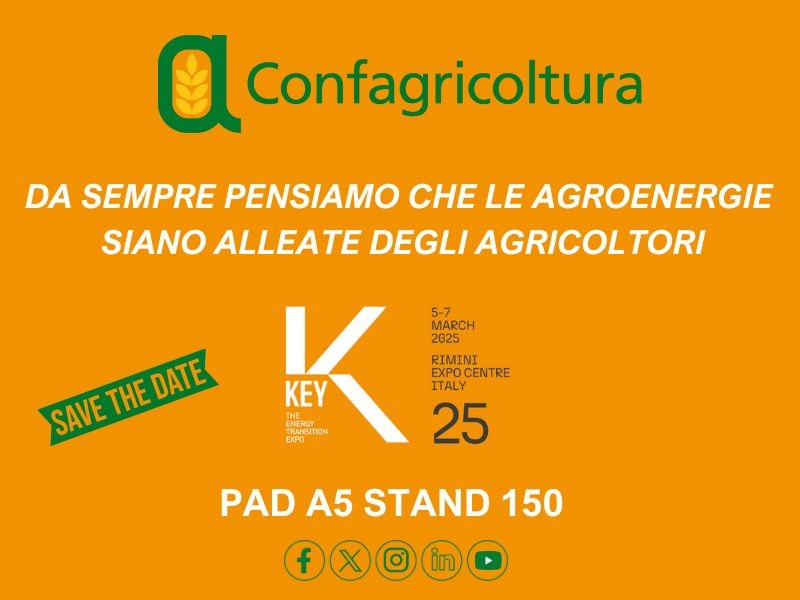 Partecipazione di CONFAGRICOLTURA a KEY – The Energy Transition Expo 2025, dal 5 al 7 marzo a Rimini.