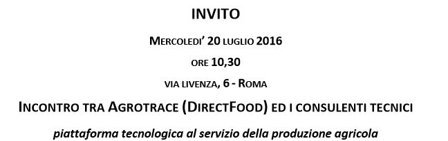 Roma, 20 luglio 2016 – Incontro tra AGROTRACE (DIRECTFOOD) ed i consulenti tecnici