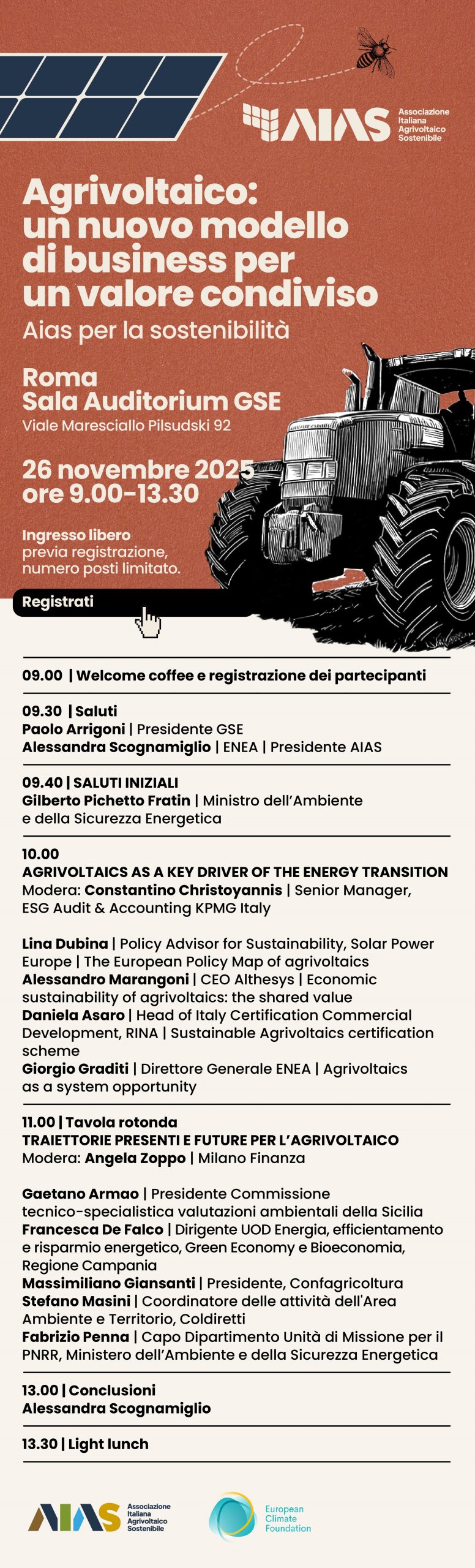 Roma, 26 novembre 2025 – AIAS “Agrivoltaico: un nuovo modello di business per un valore condiviso”
