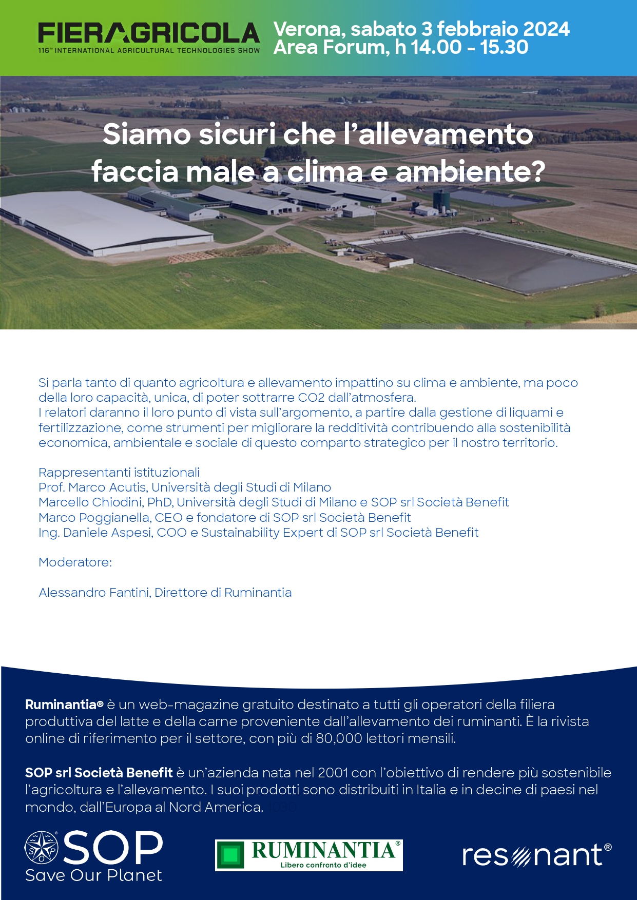 Verona, 3 febbraio 2024 – Evento SOP – Ruminantia “Siamo sicuri che l’allevamento faccia male a clima e ambiente?”